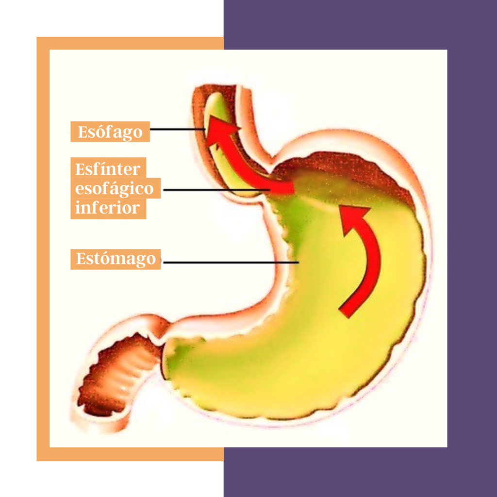El reflujo gastroesofágico es el paso del contenido del estómago hacia el esófago, es decir que los alimentos “se devuelven” tal como lo ves en la imagen.